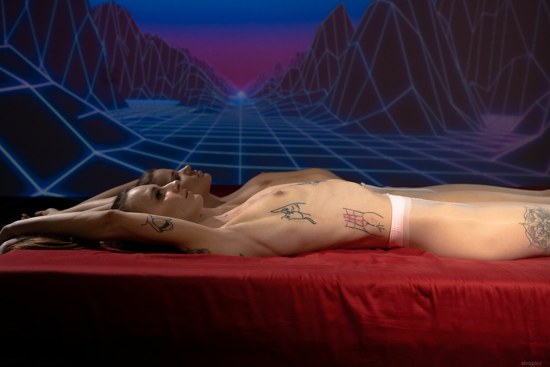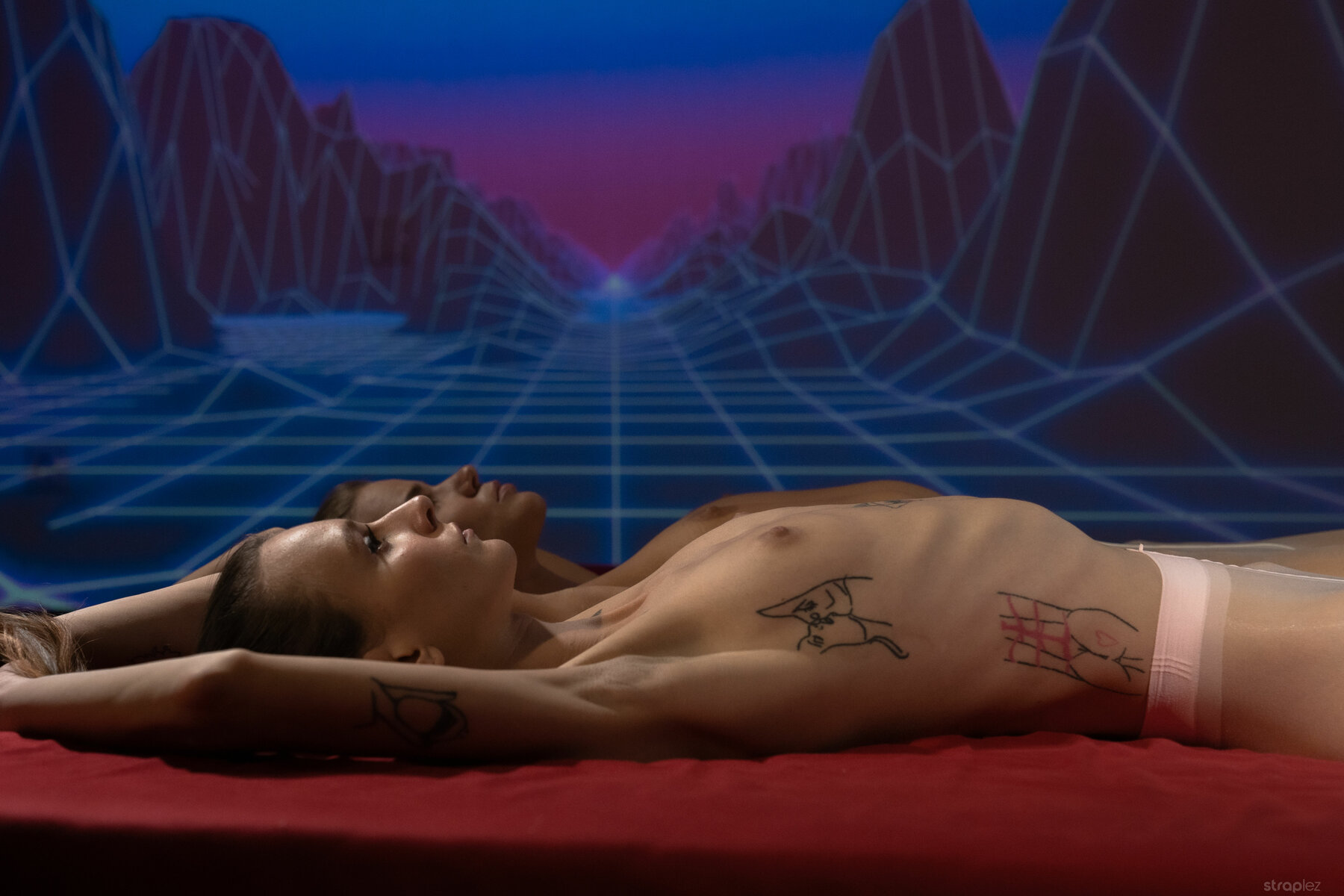 Adelle Unicorn and Sarah Kay in Straplez set When Your GF Is A Retrowave Fan